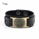 Cinco pentáculos invertidos | Calidad del material: elaborada con una aleación de zinc duradera y cuero genuino, esta pulsera ofrece longevidad y una sensación de primera calidad. -