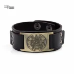 Pulsera de cuero con pentagrama y pentagrama para hombre, amuleto, amuleto, Talismán, joyería Vintage