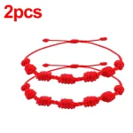 Pulseras de hilo rojo para la suerte, 7 nudos, ajustables, hechos a mano, brazaletes de cuerda DIY para pareja, amuleto, accesorios de joyería