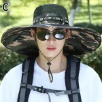 Sombrero de ala grande para hombre, gorra de pesca transpirable, protección solar UV, malla de pescador, senderismo, playa al aire libre, 15CM, novedad de verano